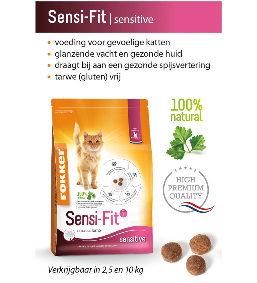 Fokker Sensi-Fit is een volledige premium kattenvoeding voor volwassen katten en is speciaal ontwikkeld voor gevoelige katten.